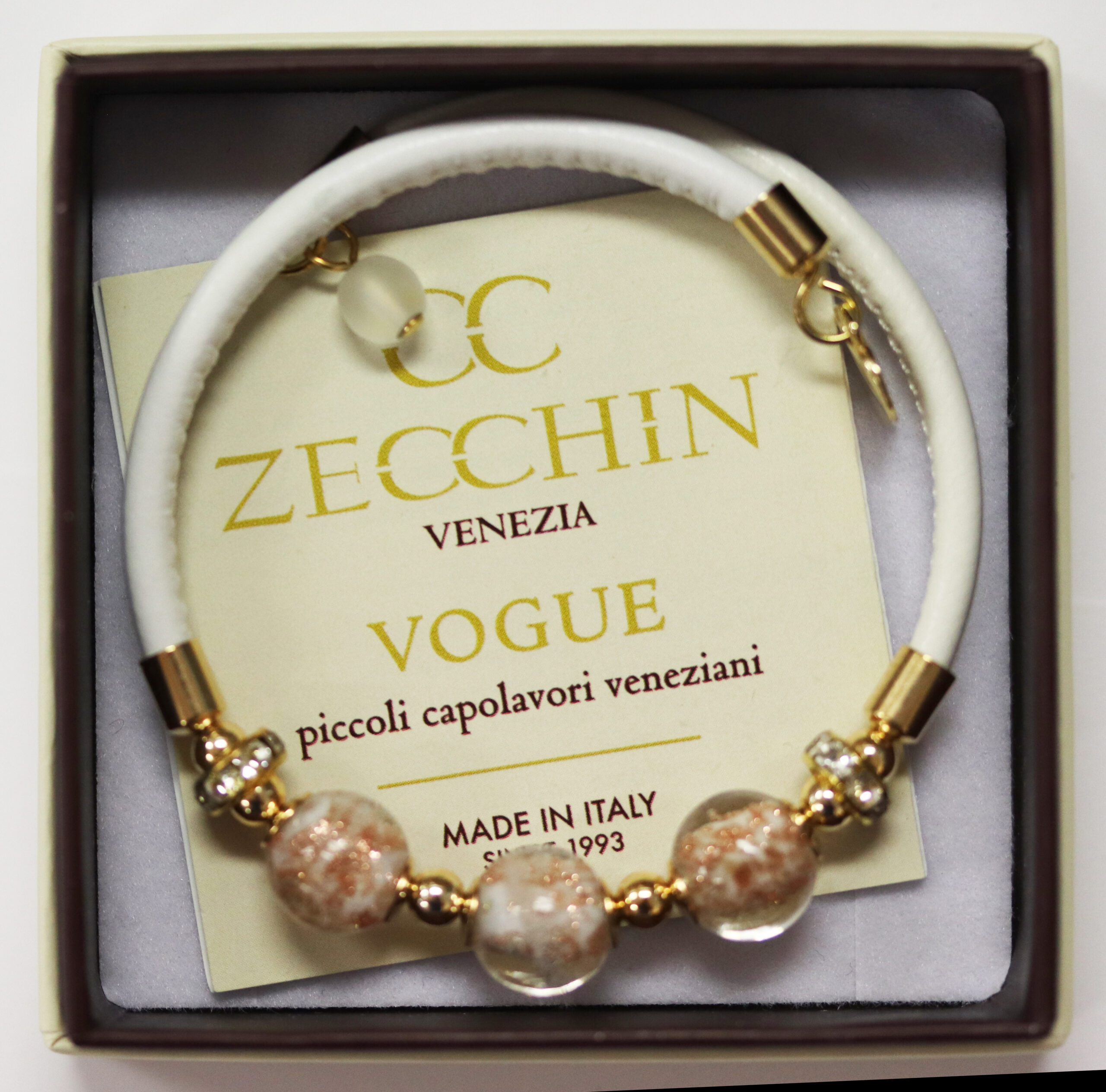 3- Bead Murano Glass Bracelet- White quantity